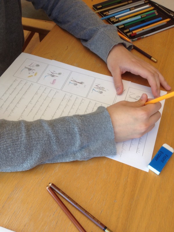 Till inspelning av animation började deltagarna att skapa manus. Vi arbetade utifrån en modell med bildmanus, där bilder ritades och fick vara bärande av story och som komplement fick cirkelledaren skriva stödord vid sidan av bilderna .